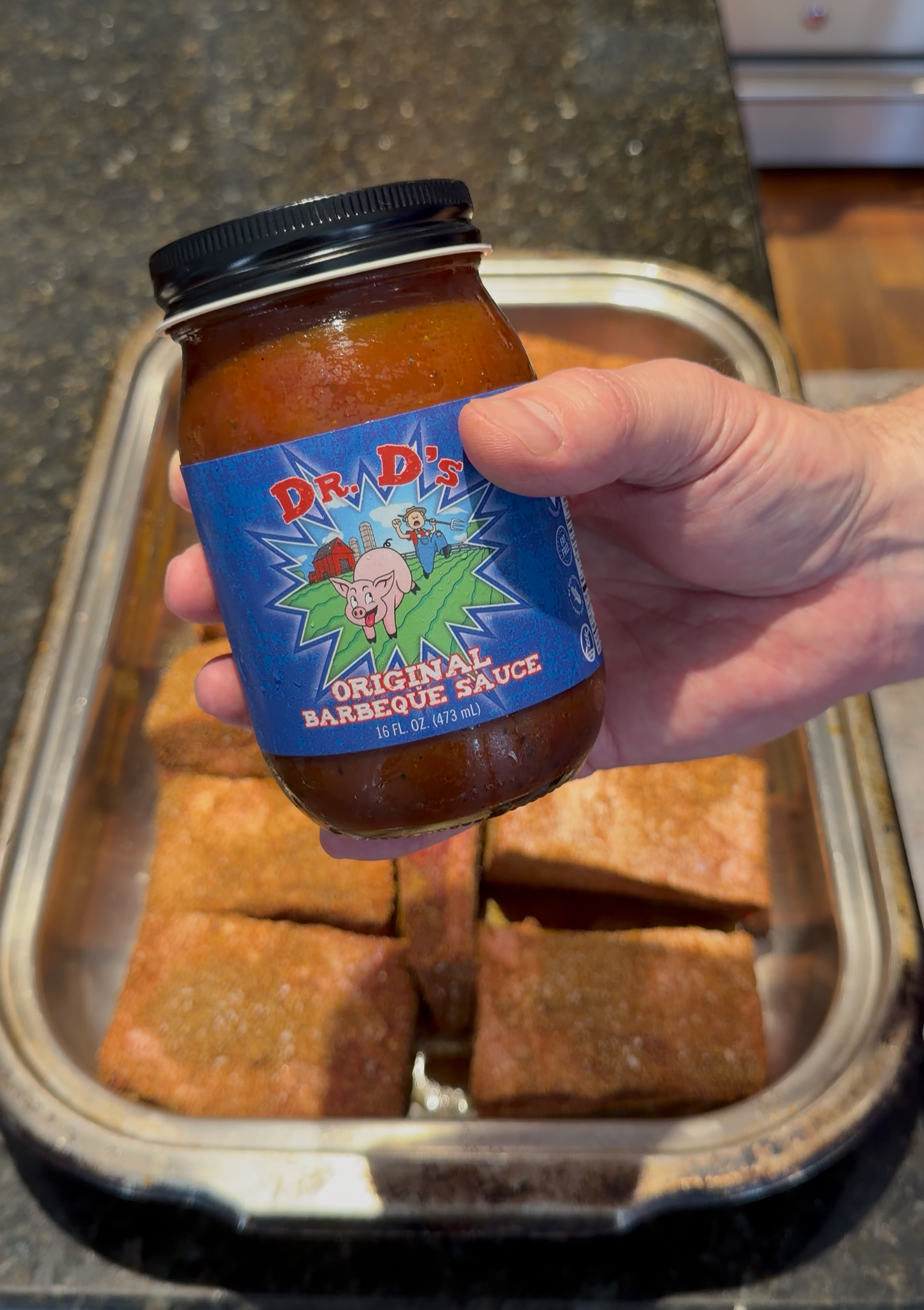 Hickory smoked cream cheese drizzled with Dr. D's Original Barbeque Sauce